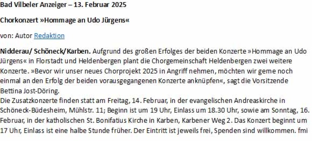 CHORGEMEINSCHAFT HELDENBERGEN e.V.